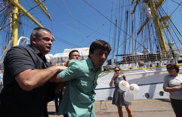 Mint kiderült, az Adrian Zglobiu nevű férfi konstancai munkanélküli. A sajtónak azt mondta: nem tervelte ki előre az akciót, spontán döntés eredménye volt. Saját bevallása szerint feldühítették a Băsescu tiszteletére előadott hazafias dalok. „Miután eladta a flottát, még hazafias dalokat is akar?\" – tette fel a kérdést. Kijelentette: nem sajnálja tettét, csak azt, hogy nem emigrált Romániából.