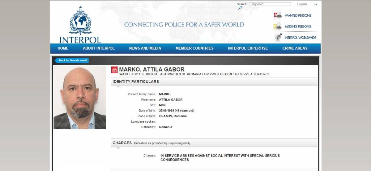 Markó ellen az Interpolon keresztül adtak ki európai elfogatóparancsot. Markó hétfőn első helyen szerepelt a román rendőrség által leginkább keresett bűnözők listáján.