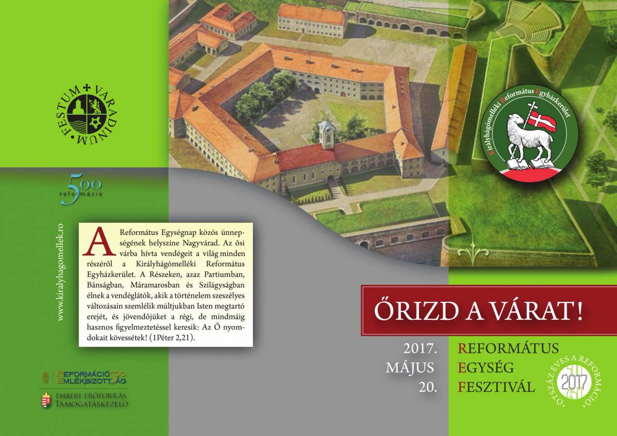 Őrizd a várat! címmel szervezik meg május 20-án a nagyváradi várban a Református Egységnapot – az esemény házigazdája a Királyhágómelléki Református Egyházkerület. A szervezők szerint az a tény, hogy éppen a reformáció évében tartják Váradon ezt az eseményt, alkalmat ad arra, hogy egy nagyszabású ünnepi rendezvénnyel mutassák fel református hitüket és erejüket.