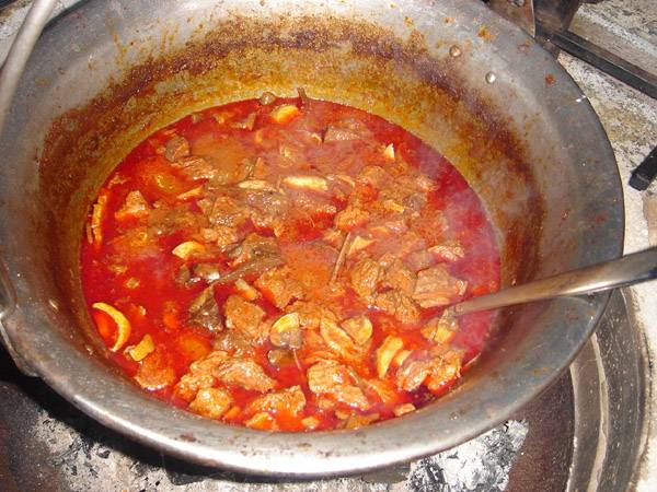 Hozzávalók: 1,5 kg marhalábszár, 3 nagy fej hagyma, só, bors, kömény, pirospaprika, 1 bő kg krumpli, 3-4 sárgarépa