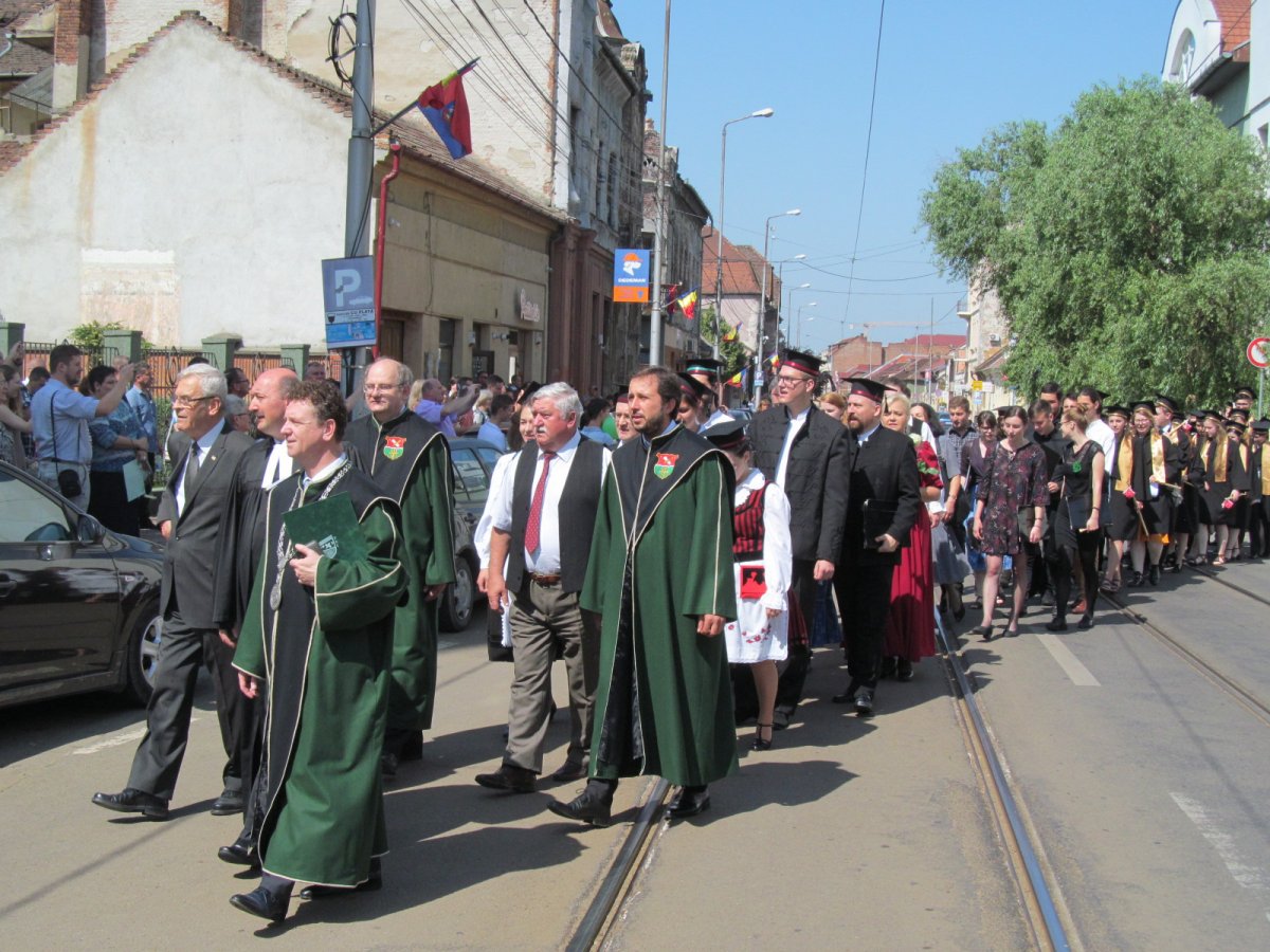 Tőkés László európai parlamenti képviselő sajtóirodájának tájékoztatása szerint ezek után a végzősök és oktatóik – élükön az egyetem vezetőivel – énekszóval ballagtak át az egyetemi templomként is szolgáló nagyvárad-újvárosi református istenházába, ahol a Szózat eléneklése után ünnepi istentisztelet kezdődött, igét Mátyás Attila evangélikus lelkipásztor hirdetett.