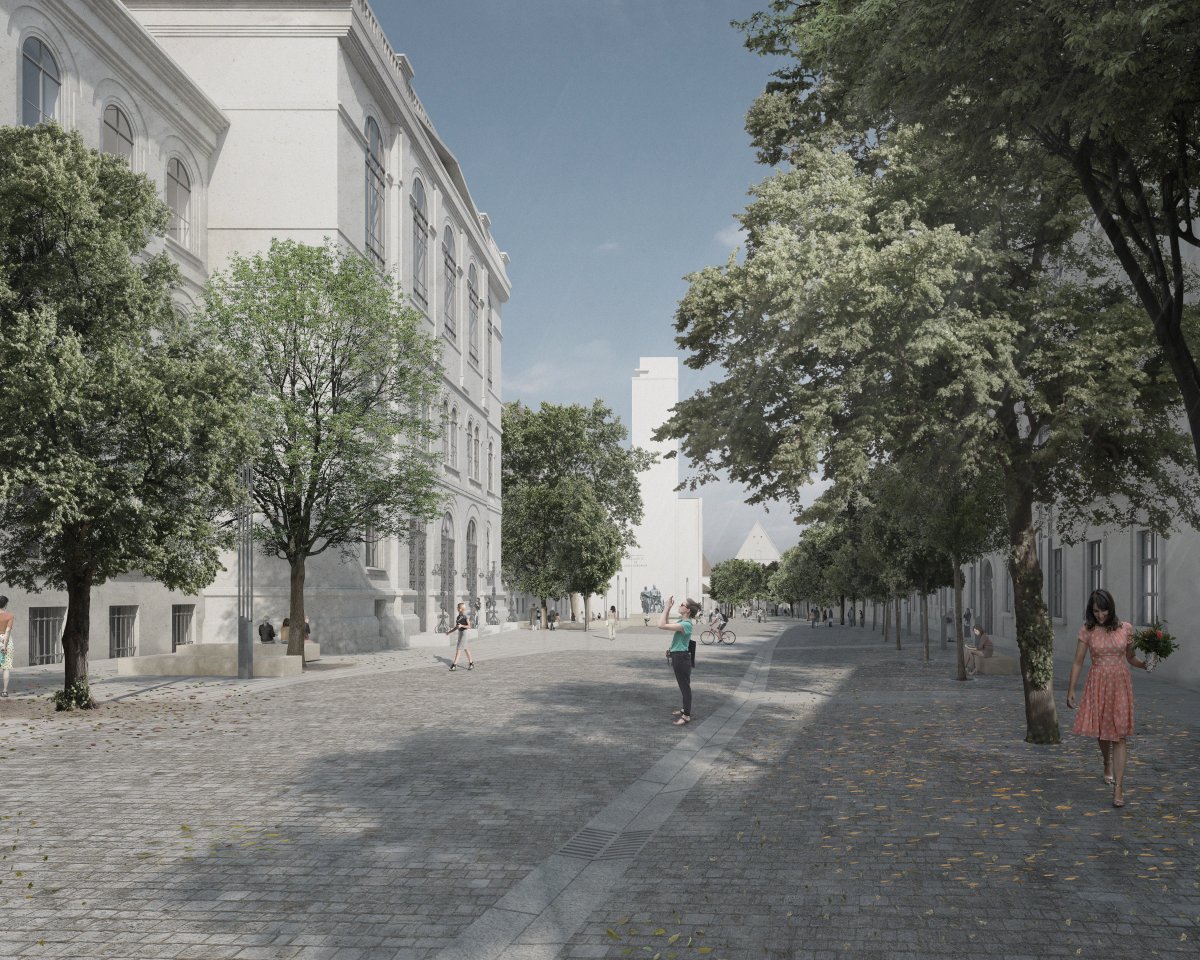 amely centrálisan szervezi az Egyetem utca gyönyörű teresedését.
