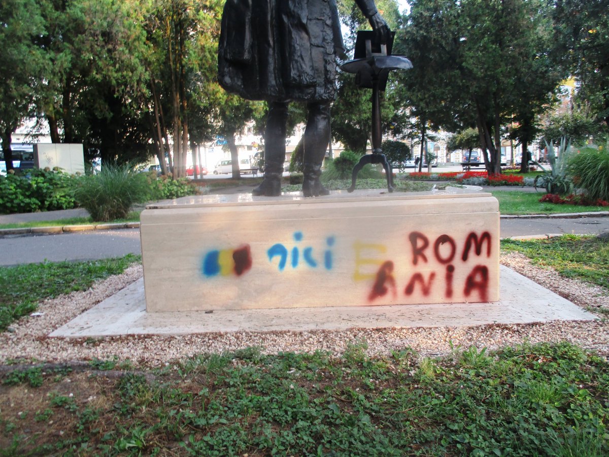 Az elkövetők egy román trikolórt festettek fel az egész alakos szobor talapzatára, valamint a következő román nyelvű szöveget: „Ez itt Románia”. Kereskényi Gábor, a megyeszékhely polgármestere közölte, mély megdöbbenéssel értesült a történtekről, szerinte a szobor talapzatára felírt szöveg magyarellenes üzenet, szélsőséges támadás nemcsak a város magyarsága, hanem az egész szatmárnémeti közösség ellen.