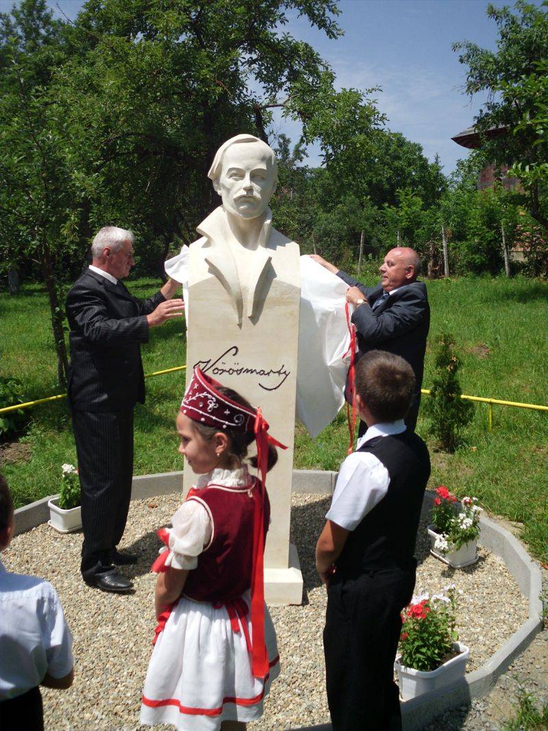 Erdélyben elsőként állítottak szobrot Vörösmarty Mihálynak tegnap a Beszterce-Naszód megyei Cegőtelkén.