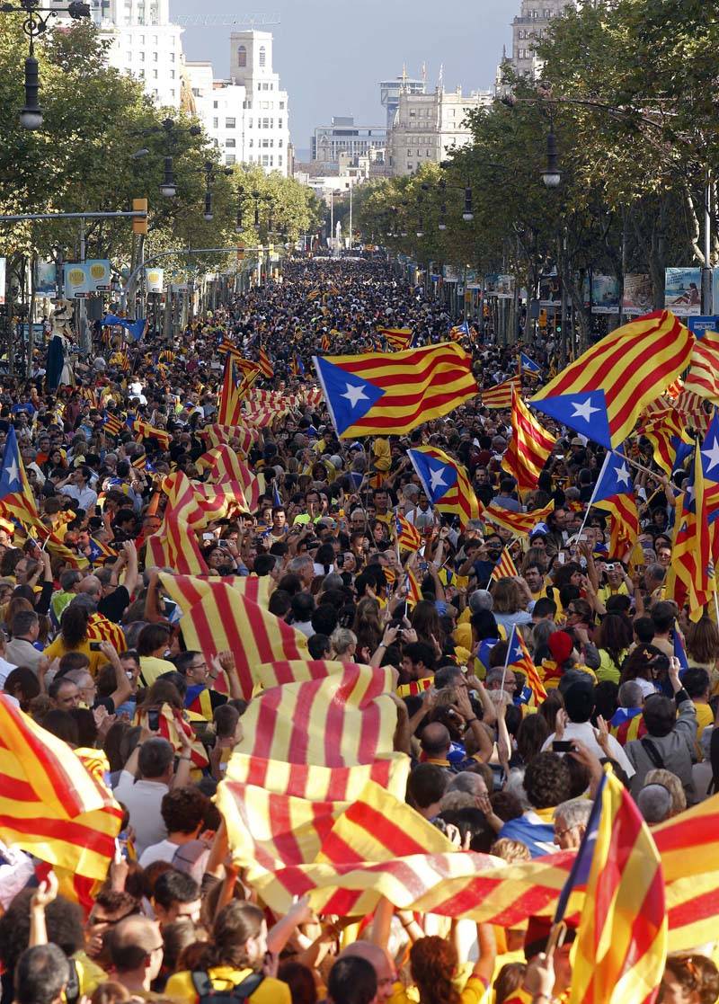 Az élőláncot a katalán nemzetgyűlés szervezte, északi kezdőpontja a franciaországi Le Pertus településen volt, délen Alcanarig ért, s áthaladt Barcelonán, Geronán és Tarragonán is. Az emberek Lérida katedrálisának harangszavára fogták meg egymás kezét. A lánc összesen 86 településen át húzódott, és 778 szakaszból állt. A résztvevők erre az alkalomra készült trikót vettek magukra, de volt, aki Barcelona labdarúgócsapatának a színeit viselte. Sokan katalán zászlót lengettek. A jelszó „Katalán út a függetlenséghez” volt. A példát Észtország, Lettország és Litvánia lakosai nyújtották, akik 1989-ben szintén függetlenséget követelve alkottak ilyen láncot, állítólag másfél millió résztvevővel. Barcelonában bekapcsolódtak láncba a katalán kormány tagjai és a város polgármestere is, de a Katalán Néppárt nem vett részt a megmozdulásban, a Katalán Szocialista Párt pedig a tagjaira hagyta a döntést. Barcelona központjában a nemzetgyűlés elnöke tartott beszédet. „Az elmúlt 30 év története megmutatta, hogy két út van: vagy alávetjük magunkat a spanyol állam centralizációjának, és eltűnünk mint nép, vagy függetlenekké válunk” – mondta Carme Forcadell. Artur Mas, a széles körű autonómiát élvező tartomány elnöke az élőlánc megalakítása előtt sajtónyilatkozatban azt mondta, hogy augusztus végén titokban találkozott Mariano Rajoy spanyol kormányfővel, de nem tapasztalt Madrid részéről politikai akaratot a katalán igények kielégítésére. Az elnök megerősítette, hogy „Katalóniában minden megoldás az urnák, a konzultációk és népszavazás útján” át halad. A katalán elnök 2014-ben szeretné megrendezni a referendumot, de Madrid alkotmányellenesnek minősítette.