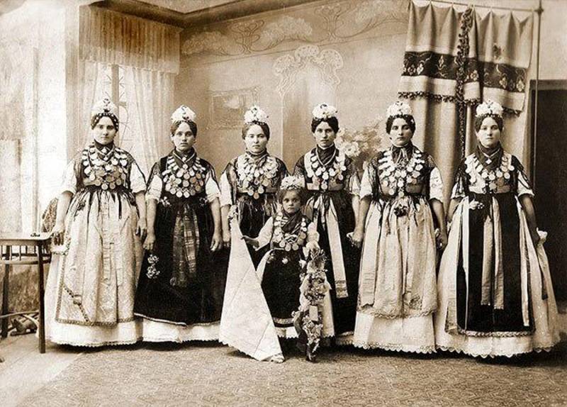 A bunyevácok szeretik megmutatni a gazdagságot: az asszonyok régebb lázsiást hordtak, nagy értékű ezüstpénzből készült nyakbavalót.