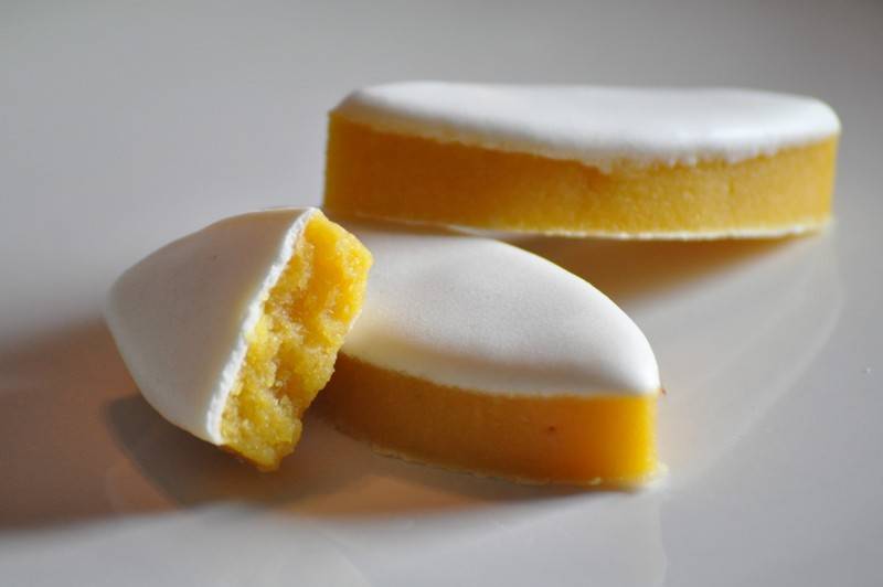 Az alábbi sütemény, az eredeti calisson receptje Provence-ból származik, és állítólag 1454 óta nem változott: a darált mandulát összekeverik aprított, aszalt sárgadinnyével és narancshéjjal, narancsvirág vízzel ízesítik. Rizslapra kenik, tetejére felvert tojáshabot simítanak, és kivágják.