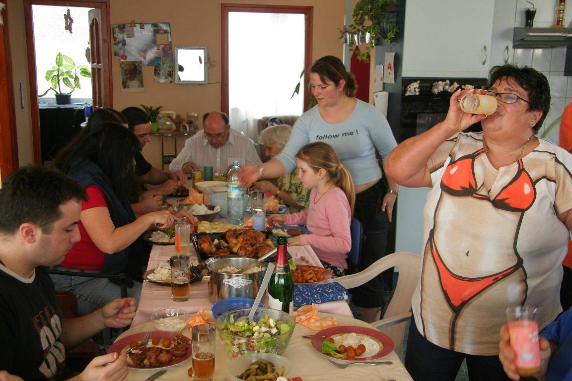 Bár közösen enni nagyon jó dolog, a világnak ezen a felén nem terjedt el ez a szokás. Nyáron még csak-csak összegyűlünk, de azt is inkább a szabad tűzön való sütés-főzés imádata miatt tesszük, nem azért, mert sokan enni együtt egyszerűen jó. Különben mindig sietünk, reggel mindenki máskor, másfele rohan, ebédkor még mindig nincs együtt a család, vacsoraidőben meg együtt vannak, de akkor már ismét sietni kell, mindenki fáradt, másnap munka van. Persze vannak a családi összejövetelek, amelyek nagyon jó, emlékezetes alkalmakká válhatnak, de ezeket is inkább a szokás hozza össze, mint a közös evések szeretete.