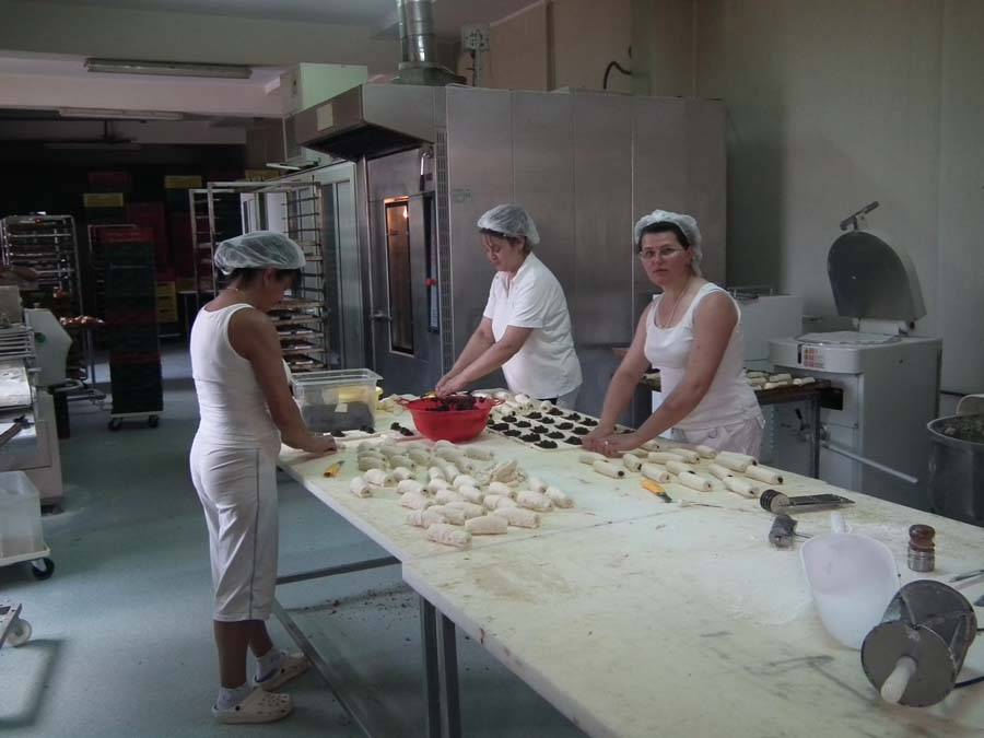 A német malomipari és svájci informatikai berendezéssel ellátott gabonamalom kívül-belül úgy fest, mintha reklámlapból pottyant volna ide. Kilóg abból a sorból, amit az utóbbi két évtizedben újságíróként tapasztalhattam meg kisebb-nagyobb élelmiszeripari vállalatokban. De hasonlóan jól mutat a cég sütőipari részlege is, ahol napi tíz tonna kenyér és negyvenféle más pékáru készül. A sütőben nincs idő alkalmazottal társalogni, a kemencéből hat-hat kenyeret tartalmazó tepsiket szednek ki a pékek, a ládákba jutó kenyér előbb szeletelőbe, vagy így, egészben kerül fóliába: a kenyérszállító járművek naponta többször is útnak indulnak a cég üzletei fele a megyébe.Valamivel lazábbnak tűnik a program a süteményes részlegen, ahol házi receptek alapján készített pékárukat, aprósüteményeket formálnak az asszonyok, lekváros kiflijük íze csemegének számít.