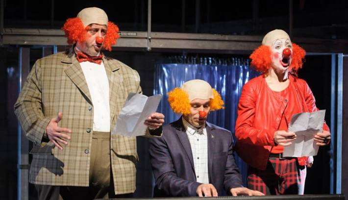 A stúdiószínpadi előadásban a három ügynököt Dimény Áron, Bogdán Zsolt és Györgyjakab Enikő alakítja kiválóan. Nem csak színészi tudásukat teszi próbára az előadás: az emeletes díszleteken való mászkálás, ugrálás felér egy másfél órás tornaórával (Dimény Áron előadás közben két kilót fogyott), de az állóképesség hiányától szemmel láthatólag nem szenvednek a színészek. A kissé szószátyár Zucker ügynök szerepében Bogdán Zsolt ismét felejthetetlen figurával örvendezteti meg a nézőket, a hanghordozás, a test- és arcbeszéd szinte teljes tárházát megcsillantva alakít. Dimény Áron kiválóan formálja meg az olykor „feledékenységben” szenvedő, teljes metamorfózison áteső (előbb kövér, aztán sovány, együgyű, majd igenis, borotvaeszű) Murdoch ügynököt, a Györgyjakab Enikő által nagyszerűen alakított Maggie pedig az a figura, aki felteszi a mindenkiben az ott lappangó kérdést: ki az áruló? A színésznő az előadás folyamán hihetetlen meggyőző erővel alakul át a kezdeti bohócból igazi dívává. Kihívás a színészek számára az ügynökök szerepének eljátszása, összetettsége miatt akár bele is lehet bukni – ám a feladatot mindhárman magas szinten teljesítik.