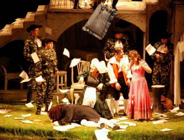 Cselvetések, cselszövések, leleplezett és leleplezetlen intrikák halmaza ez a szerelmi sokszöget felvonultató történet. A könnyebb érthetőség kedvéért jó, ha a néző előzetesen tájékozódik a cselekményről, már csak azért is, mert így könnyebben átadhatja magát a mozarti muzsika, a novákpéteri rendezői felfogás és nem utolsósorban a kolozsvári társulati összharmónia élvezetének. Mert van, amire odafigyelni, amit élvezni. Sándor Csaba Figarója amolyan parasztosan – székelyesen? – humoros, de egyben eltökélt is. Balla Sándor grófja hatalmi mámorában, önelégültségében, szerelmi vágyakozásában sértett, de esetenként mégiscsak előbukkan belőle egy kis őszinte érzelem, féltékenysége pedig letagadhatatlan. Covacinschi Yolanda Suzanne-ja kacérkodó, de állhatatos, csábos de végül is hűséges. Veress Orsolya Cherubino nadrágszerepében elfogadható, ügyesen oldja meg a különböző élethelyzeteket, hangja pedig kiváló. Végezetül, de nem utolsó sorban a Grófnő, Egyed Apollónia főnyeremény: gyönyörű hang, kiváló szerepformálás, melankólikus, lírai, vágyakozó és megbocsátó.
