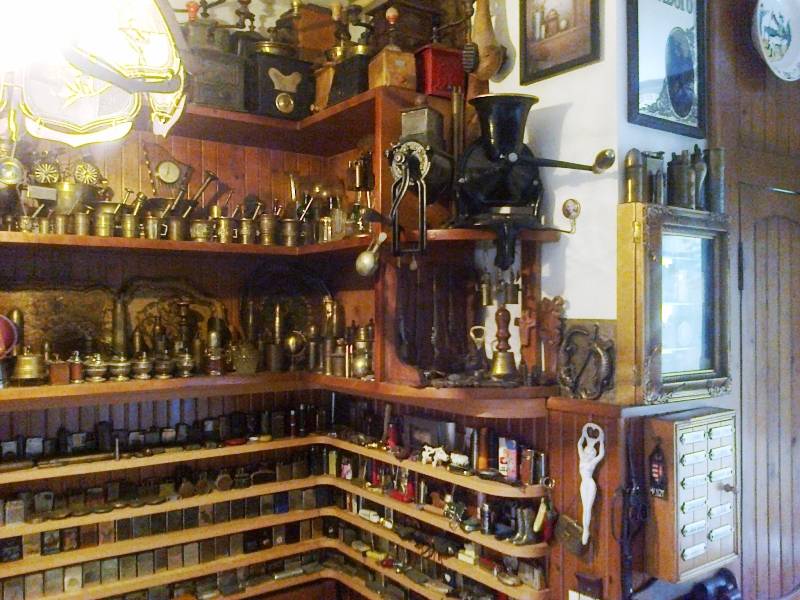 A mozsárgyűjtemény is lenyűgöző: fül nélküli, csapott oldalú barokk mozsaraktól kezdve, egészen az apró, gyógyszertárakban használatos porcelánmozsarakig mindenféle megtalálható a polcokon.
