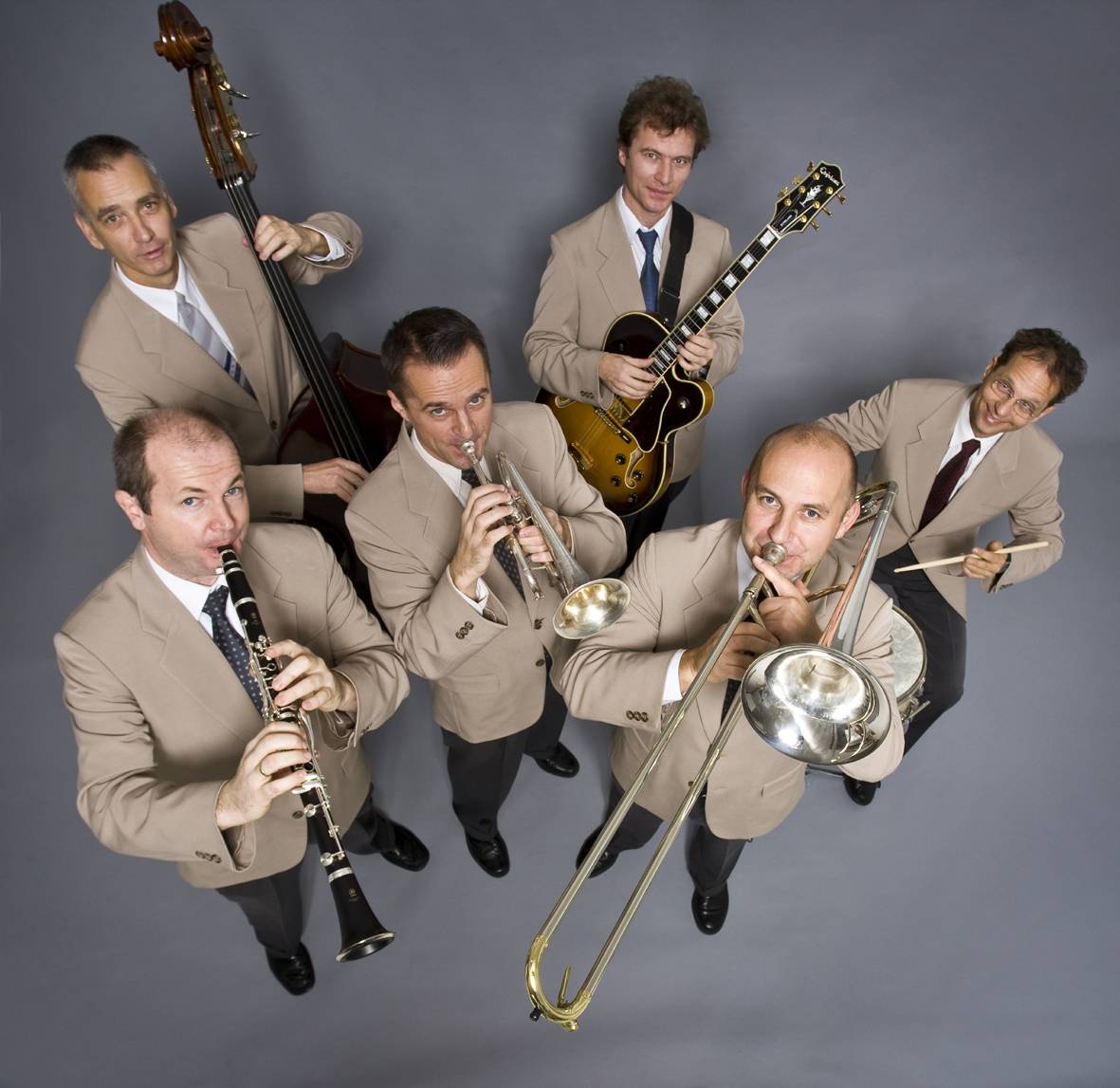 Bényei Tamás (trombita, bendzsó, ének), Bera Zsolt (harsona), Fodor László (klarinét, altszaxofon), Galbács István (dob), Juhász Zoltán (bőgő), Gáspár Pál (bendzsó, gitár) hangszeresek és az állandó vendég, Bolba Éva énekes társaságában remek, üdítő másfél órát tölthetett el a nagyérdemű. Kiváló hangszertudás, remek szólók, összeszokottság, stílushűség, magával ragadó lendület, finom, enyhén pikáns, de távolról sem ízléstelen humor – mind-mind remek teljesítmény adalékai. Az előadott repertoár legtöbb darabja a magyar filmgyártás harmincas évekbeli dicsőséges korszakához köthető, Karády Katalin, Jávor Pál, Latabár Kálmán és a kor többi csillaga által is énekelt slágerek hangzottak el. Nem hiányoztak az amerikai sikerek sem, de hallhattunk gyönyörű, melankolikus-mélabús francia slágert (a világhírű, belga születésű francia roma dzsesszművész, Django Reinhardt szerzeményét) és orosz népdalfeldolgozást is. Ami egyébként eltér a zenekar irányvonalától, hiszen ritkán játszanak saját szerzeményeket. Szerencsére ez esetben megtették, talán azért is, hogy bemutatkozási teret adjanak Bényei Tamás és Gáspár Pál bendzsóduó virtuozitásának. Megérte, volt mit csodálni.