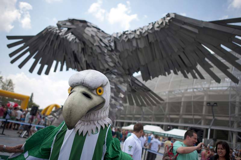 A Groupama Aréna ráadásul minden túlzás nélkül a város dísze, a reptérről Budapestre érkező turista is akkor tátja el először a száját álmélkodásában, ha elhalad mellette. Hát még, ha be is tér. Mert a 14,735 milliárd forintos költségvetésű mű – 22 ezres kapacitását leszámítva – az Arsenal vagy a Bayern München otthona is lehetne. Emellett rekordidő alatt készült el: tavaly március 28-án indultak meg a munkagépek, idén májusban pedig az Üllői útról vagy az Albert Flórián útról – a Gyáli út Nagyvárad tér és Könyves Kálmán körúti szakaszát keresztelték át – beleselkedők, no meg főként a hivatalos stadiontúrákon résztvevők már nem hittek a szemüknek. A magyar építőipar és futball színvonalához képest csodát láttak. Kész csodát. A kontinentális szövetség, az UEFA szigorú szempontrendszere alapján is négycsillagos minősítésű stadion gyepe angol, külső váza spanyol, a falakba azonban az ős „franzstadti” szellemet is beépítették, a szó szoros értelmében is, hiszen az elbontott, régi pálya alkotóelemeit is felhasználták. Még az is gazdagabbá lett vele, tőle, aki fanyalogva állítja: a magyar labdarúgás jelen állapotában nem érdemel ehhez fogható létesítményeket.