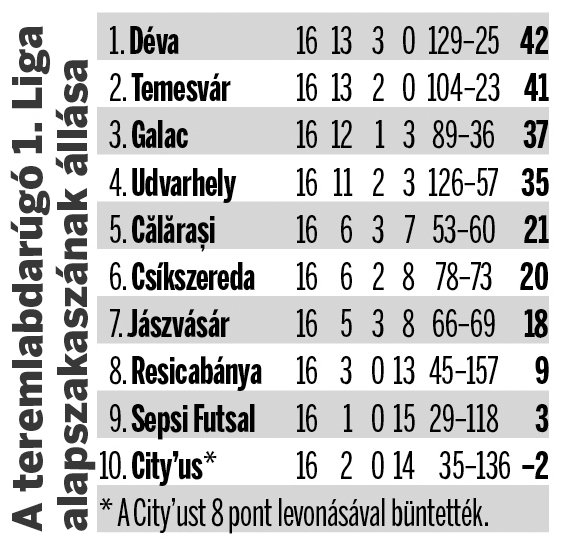 Kemény összecsapások a pályán és a zöld asztalnál, változó erőviszonyok –többek közt ezek jellemzik a román élvonalbeli futsalbajnokság jelenleg is zajló szezonját. A pontvadászat kezdetén négy csapatot lehetett megnevezni, amelyek a végső győzelemre is eséllyel pályáznak: a címvédő Dévai Autobergamo, a Temesvári Informatica, a tavalyi döntős Galaci United és az FK Székelyudvarhely. Hosszú időn keresztül fej-fej mellett haladtak a ranglista élén, de az alapszakasz második felében a Béga-partiak és a Hunyad megyeiek elhúztak.