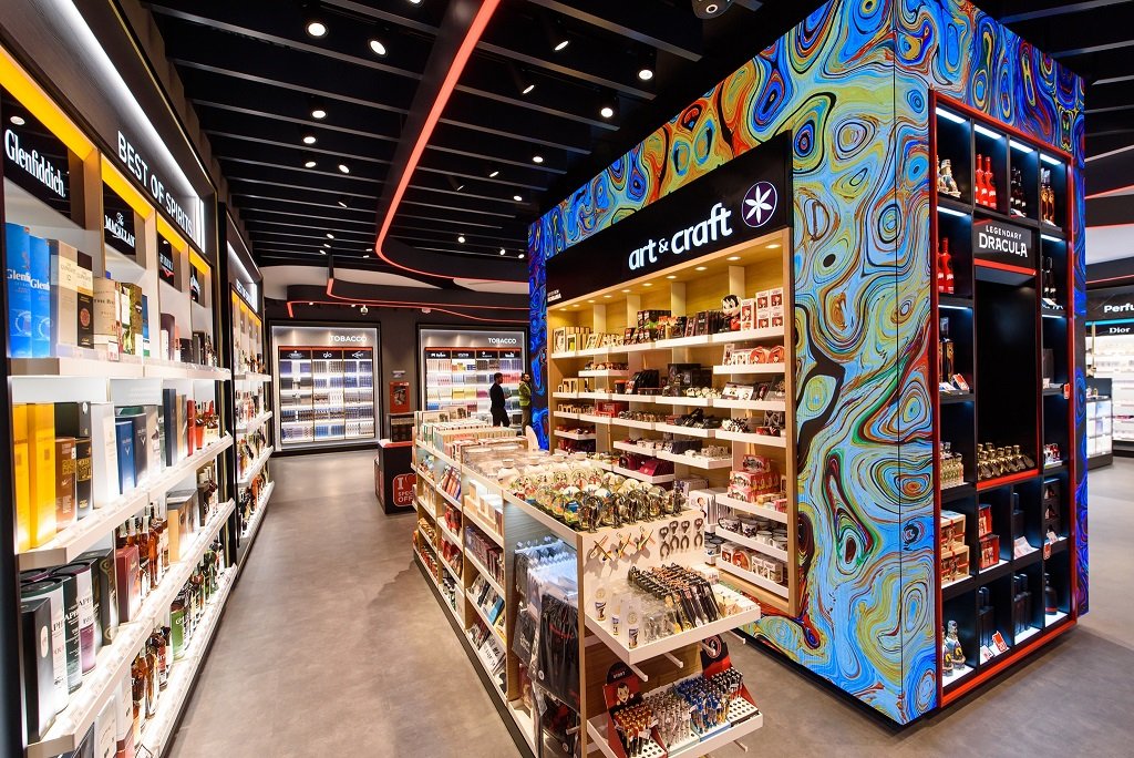 A több mint 2000 terméket tartalmazó portfólióval a walk-through típusú üzlet 50 parfümmárkának ad otthont, melyek között megtalálható a Chanel, a Dior, a Tom Ford, a Lancome, a Kilian, a Hermes, a Guerlain, az Armani, az Yves Saint Laurent és a Boss, továbbá olyan divatcégek, mint a Guess és a Desigual, valamint olyan ékszermárkák, mint a Swarovski és a Fossil. Ezeken túl széles skálában vannak jelen italok, édességek, játékok, bőröndök és emléktárgyak is.