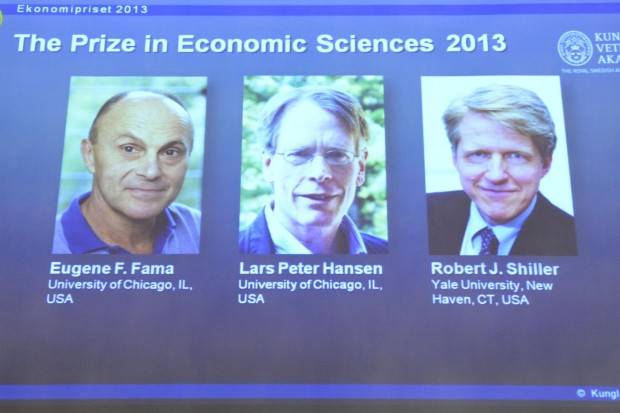 Három amerikai közgazdásznak, Eugene Famának, Lars Peter Hansennek és Robert Shillernek ítélték oda a 2013. évi közgazdasági Nobel-emlékdíjat – jelentette be a Svéd Királyi Tudományos Akadémia hétfőn Stockholmban.Az indoklás szerint a díjat azokért az empirikus kutatásokért kapták, amelyekkel - egymástól függetlenül – azt vizsgálták, hogyan lehet több évre előrejelezni a részvény- és kötvénypiaci árak változását.