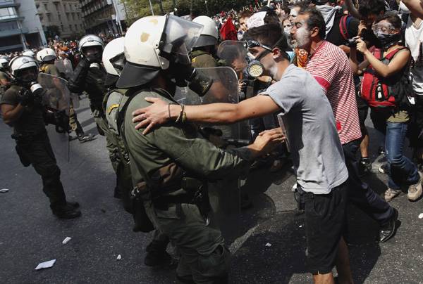Erre az összegre feltétlenül szüksége van a görög államnak ahhoz, hogy a jövő hónap közepére ne váljon fizetésképtelenné. Tegnap délután nagyjából 20 ezer tiltakozó gyűlt össze a görög parlament előtt. A demonstráció eleinte békés volt, de idővel kivált a tömegből néhány száz álarcos, csuklyás fiatal, és rátámadt a rendőrökre, akik könnygázt vetettek be. Többen megsebesültek. A tiltakozók felgyújtottak egy műholdas távközlési kocsit, bezúzták több üzlet kirakatát, és közben a médiát és a bankokat szidalmazó rigmusokat skandáltak. Előzőleg a békés tüntetők transzparensekkel, dobszó kíséretében végigvonultak Athén belvárosán, és a megszorító csomag elleni jelszavakat skandáltak. Görögországban sokan úgy érzik, velük fizettetik meg a politikusok által elkövetett hibákat. Szerintük a tervezett intézkedések az egyszerű munkavállalókat és a nyugdíjasokat sújtják, miközben nem érintik a gazdagokat.