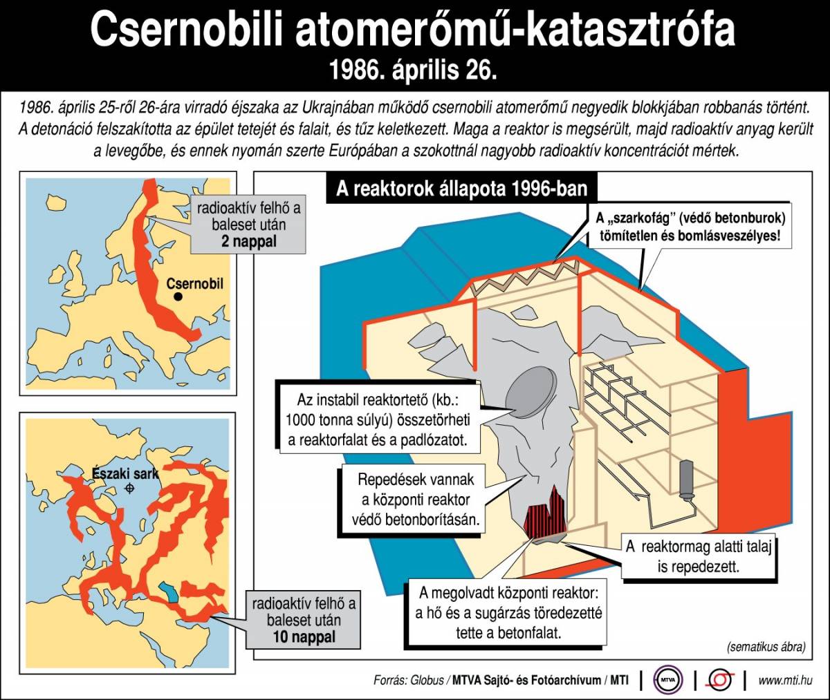 Helyi idő szerint éjjel egy óra 23 perckor hiba csúszott egy próbaüzembe, a négyes számú reaktor felrobbant (gáz- és vegyi detonáció következtében). Bekövetkezett a legsúlyosabb baleset, ami egy atomerőműben elképzelhető. A detonáció napokon át radioaktív részecskéket röpített a levegőbe, a radioaktív felhő Nyugat-Európa fölé húzódott. Tízezrek voltak kénytelenek elhagyni a környéket.