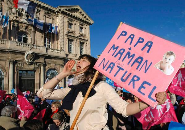 Philippe Gosselin, a Népi Mozgalom Uniójának (UMP) szónoka szerint „a kormány olyan társadalom mellett kötelezte el magát, amely a jobboldal számára nem kívánatos”. „Ma a házasság és az örökbefogadás, holnap a mesterséges megtermékenyítés és a béranyaság kérdése (lesz) napirenden” – fogalmazta meg a képviselő a törvénytervezetet ellenzők félelmeit. A szocialista javaslatban szerepel az örökbefogadás engedélyezése az azonos nemű párok számára. Eredetileg a mesterséges megtermékenyítés szabályozásának módosítása is benne volt a tervezetben, de azt a kormányzat végül kivette a szövegből, és a családügyi törvény márciusban esedékes módosítási javaslatához csatolta. A béranyaság Franciaországban nem engedélyezett, de a hét elején az igazságügyi minisztérium körlevélben kérte az illetékes hatóságokat, hogy tegyék lehetővé a francia állampolgárság megadását a francia apától béranya révén külföldön született gyermekek számára. Ez az ellenzék részéről óriási felháborodást kiváltó intézkedés mintegy száz, francia családban élő hontalannak számító gyermeket érintene. A kormány ugyanakkor jelezte: nem tervezi a béranyaság legalizálását.