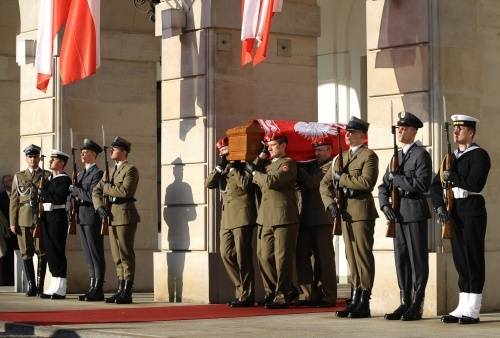 A gyászszertartáson csak az elnöki pár családja és közeli barátai, valamint a lengyel vezetők és külföldi küldöttségek vehettek részt. A szentmise után a koporsókat ágyútalpon vitték a királyi fellegvárban álló Wawel-székesegyházba, Lengyelország nagyjainak panteonjába.