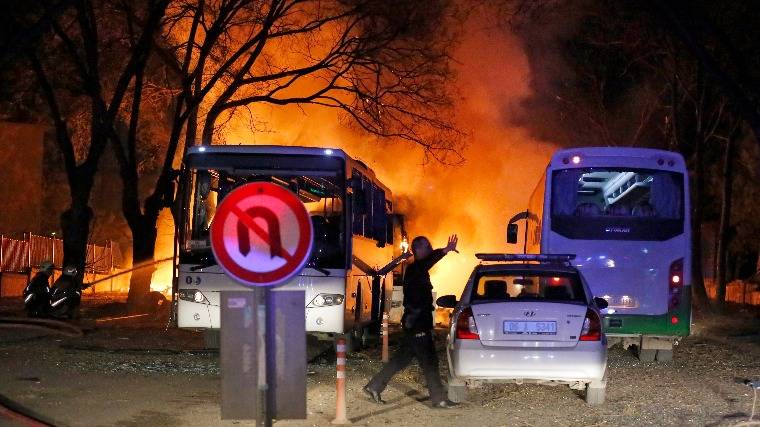 A robbanás helyi idő szerint este fél 7-kor történt Ankara Cankaya nevű kormányzati negyedében, nem messze a parlamenttől és a török hadsereg vezérkarának főhadiszállásától. A detonációt feltehetően gépkocsiba rejtett pokolgép okozta. A török vezérkar megerősítette, hogy terrortámadást követtek el. A hivatalos közlés szerint a merénylő öt, katonákat szállító autóbuszt vettek célba, amelyek éppen megálltak a piros lámpánál. A járművek közül mindegyik súlyosan megrongálódott, kettő kiégett.