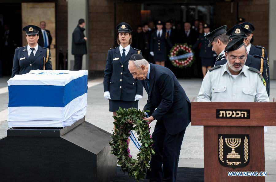 A néhai miniszterelnök katonai tiszteletadással fekete szőnyegen elhelyezett, izraeli zászlóval beburkolt koporsójánál elsőként Simon Peresz államelnök és Juli Edelstein, a kneszet elnöke helyezett el koszorút. Saron 2006. január 4-én agyvérzés miatt esett kómába, és azóta sem tért magához; halálát az orvosok közlése szerint közvetlenül a szívműködés leállása okozta. Az izraeliek legendás tábornoka előbb jobboldali politikusként a telepeket építette, később miniszterelnökként egyoldalú lépéssel a heves jobboldali tiltakozás dacára kiköltöztette a telepeseket a Gázai övezetből.