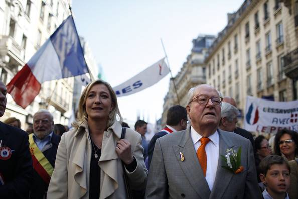 Korábban éppen az NF jelenlegi vezetője tiltotta meg az apjának, hogy a hagyományos május 1-jei nagygyűlésen – amelyet egyébként Jean-Marie Le Pen honosított meg – szót kapjon a színpadon. A pártalapító még tavaly is tartott itt beszédet. „Szándéka nagyon világos: nem bírja elviselni, hogy a Nemzeti Front előrehalad, jó eredményeket ér el, és mindezt nélküle – összegezte Marine Le Pen apja ismétlődő provokatív megnyilatkozásait. – Ráadásul mindezt olyan stratégiával értük el, amely soha nem volt az övé, amelyben sohasem hitt. A Nemzeti Front jelenlegi győzelmei jól tükrözik annak a felfogásnak a kudarcát, amelyet ő képviselt”.