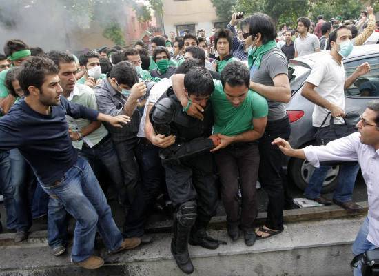 Közben az iráni állami televízió vasárnap arról számolt be, hogy letartóztatták a betiltott és száműzetésbe kényszerített ellenzéki Mudzsahedin Kalk Szervezet több tagját, akiket „terrorcselekményekkel”, köztük gyújtogatásokkal és a Mahmúd Ahmadinezsád elnökhöz hű bászidzsi iszlám milícia elleni támadásokkal vádolnak. A jelentés szerint, amelyből nem derült sem a letartóztatottak száma, sem pedig az őrizetbe vételük ideje, a szervezet tagjait Nagy-Britanniából irányították és azután tértek haza Iránba, hogy Irakban kaptak kiképzést. Ugyanebben a tévéadóban Manusehr Mottaki külügyminiszter összeesküvéssel vádolta meg Nagy-Britanniát. „Nagy-Britannia két éve sző összeesküvést az elnökválasztás ellen” – mondta diplomatákkal találkozva. A politikus szerint „a választások előtt emberek beáramlását figyelték meg” Nagy-Britanniából, és „jelen voltak a brit titkos szolgálatokhoz kapcsolódó elemek”. Beavatkozással vádolta Németországot és Franciaországot is.