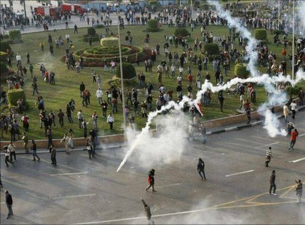 Szemtanúk szerint az ellenfelek botokkal és kövekkel vívtak „csatát”, amelyben a lovas-tevés támadókat körbefogták, és a földre rángatták. A helyszínen tartózkodó katonák állítólag figyelmeztető lövésekkel próbálták megfékezni az indulatokat, de nem avatkoztak közbe. Mohamed el-Baradei ellenzéki vezető az al-Dzsazíra televízióban azt kérte a katonáktól, hogy „védjék meg az egyiptomi életeket”. Nem maradhatnak semlegesek, még ma közbe kell lépniük – mondta. Reméli – tette hozzá –, hogy Mubarak nem várja meg a távozással a pénteket, amikor újabb nagy tüntetés lesz.