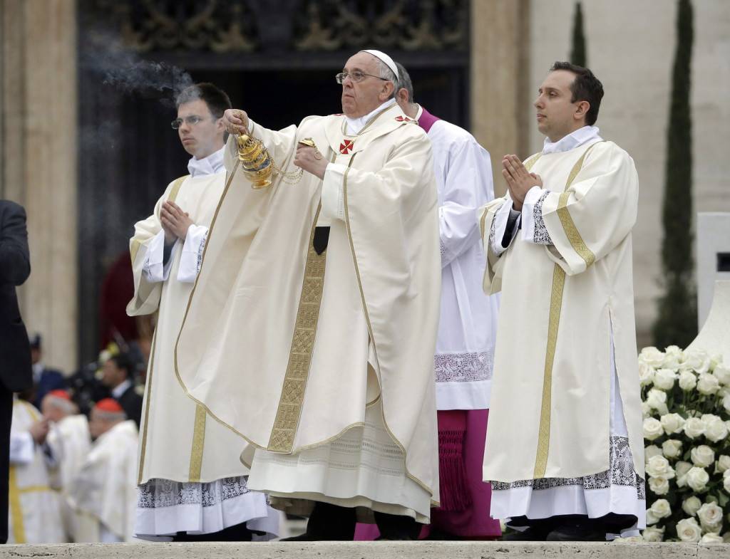 A szentmise elején Angelo Amato bíboros, a Szentté avatási kongregáció prefektusa a posztulátorok kíséretében a pápa elé járult és egymás után háromszor kérte Boldog XXIII. János (1958-1963) és II. János Pál (1978-2005) szentté avatását. Az egyházfő minden egyes kérelemre válaszolt, a harmadszori kérelem után pedig elmondta a szentté avatás ünnepélyes formuláját, amellyel kiterjesztette az új szentek tiszteletét az egész világegyházra.