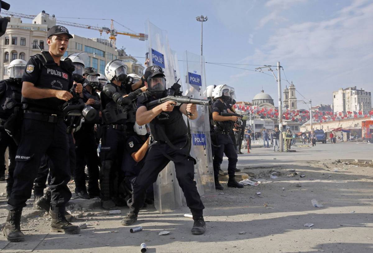 A rendőrség vízágyúkkal felszerelt páncélosok támogatásával áthatolt a barikádokon, amelyeket a tüntetők emeltek a térre vezető főutakon, majd könnygázzal és gumilövedékekkel kényszerítette a gyér számú felvonulót, hogy a térrel szomszédos Gezi parkba meneküljön. Recep Tayyip Erdogan kormányfő – aki ma tárgyal a tiltakozókkal – tegnap közölte, az eddig négy halálos áldozatot követelő kormányellenes tüntetésekkel egyesek be akarják sározni Törökország jó hírét, és szándékosan kárt akarnak okozni a nemzetgazdaságnak.