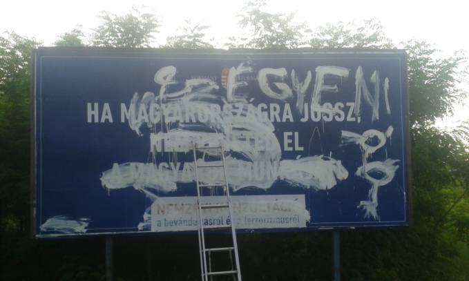 “Plakátháború” robbant ki Magyarországon, miután ellenzéki aktivisták több helyszínen is megrongálták a kormány bevándorlás-ellenes kampányának részeként kihelyezett óriásplakátokat.