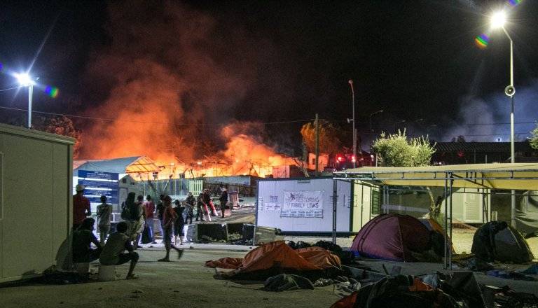 A Moria város melletti táborból 3-4000 menedékkérő kényszerült elmenekülni a szeles időjárás miatt gyorsan terjedő lángok elől. A rendőrség szerint a tüzet szándékos gyújtogatás okozta.