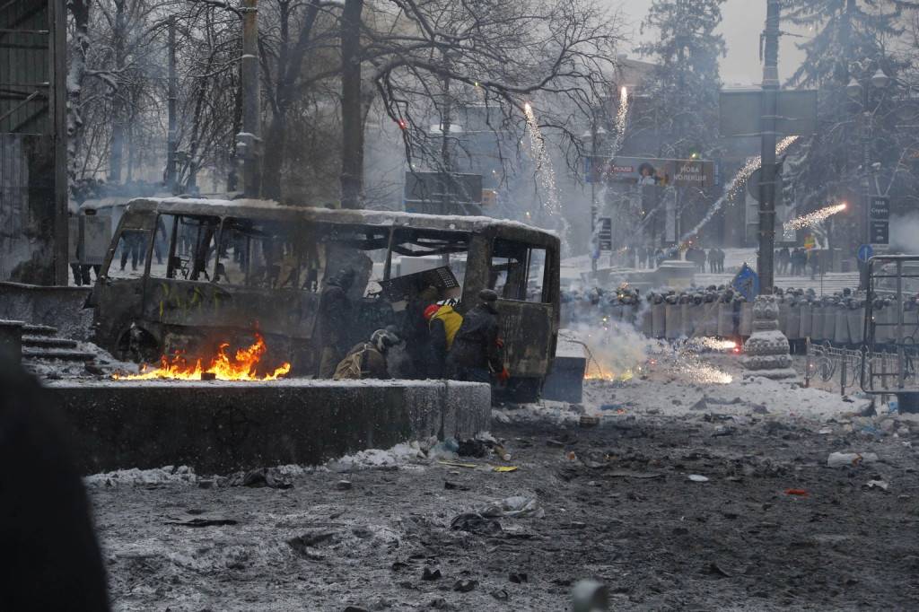 Ezután a Berkut rohamrendőri alakulat visszavonult, így a tüntetők visszafoglalták korábbi állásaikat, egészen a kiégett rendőri járművekből álló barikádig nyomultak előre. Az érvényben lévő szabályzat szerint a rohamrendőrök lőfegyvereket is bevethetnek Ukrajnában a közrend helyreállítására, illetve ha támadás éri őket. Eddig ettől tartózkodtak, és különböző oszlatási eszközöket – könnygázt, hang- és fénygránátokat, gumilövedékeket – használtak a rájuk támadó tüntetőkkel szemben.