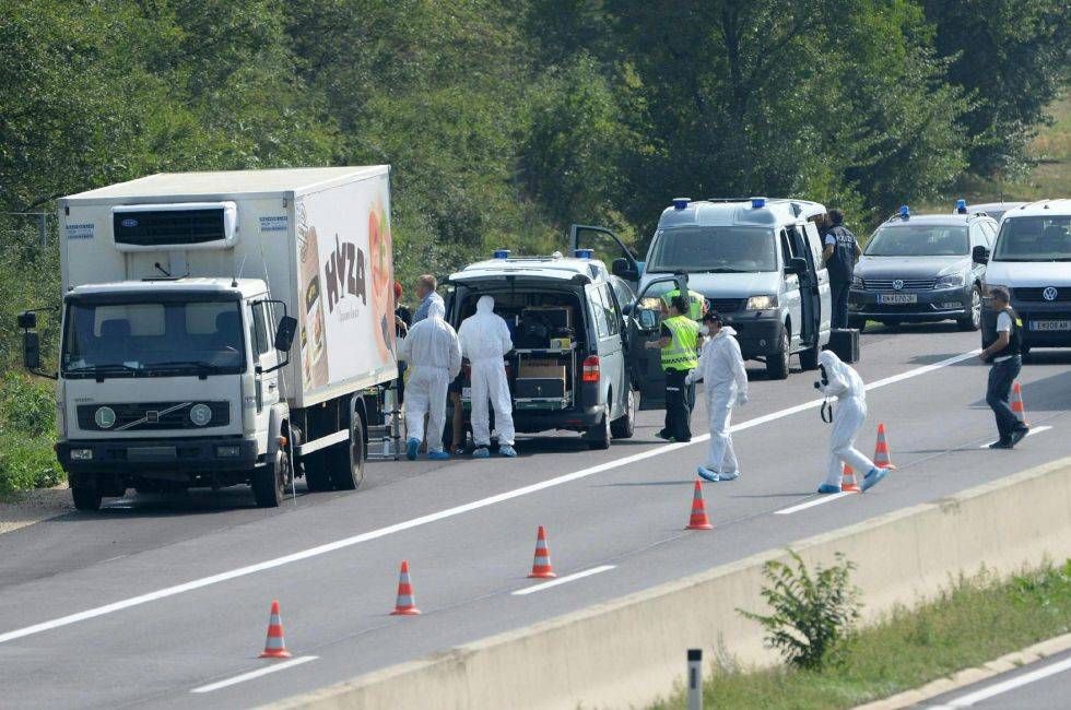 Az első információk szerint a menekültek megfulladhattak a magyar rendszámú, sofőr nélkül veszteglő furgonban, amely szerda óta állt az ausztriai sztráda vészsávjában. Különben a teherautón az észak-szlovákiai Zsolna mellett működő Hyza húsüzem logója, valamint több szlovák nyelvű reklámfelirat látható. Az osztrák belügyminiszter mindenkit érintő tragédiának nevezte a történéseket. „Sötét ez a mai nap” – fogalmazott Johanna Mikl-Leitner, zéró toleranciát hirdetve a „szörnyűséges, megvetendő, iszonyatos” módszerekkel dolgozó embercsempészekkel szemben.
