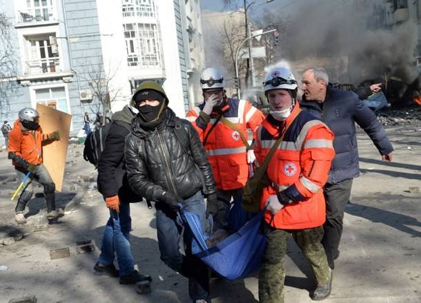 Leszja Orobec, az ukrán ellenzéki Haza (Batykivscsina) parlamenti képviselője Facebook-oldalán közzétette, hogy három halott tüntető van a Tisztek Házában – a honatya a halál okát nem részletezte –, hét további pedig „élet és halál” között. Szavai szerint a mentőket nem engedték az épülethez, ahol kedden az összecsapások kitörése után rendeztek be elsősegélypontot.