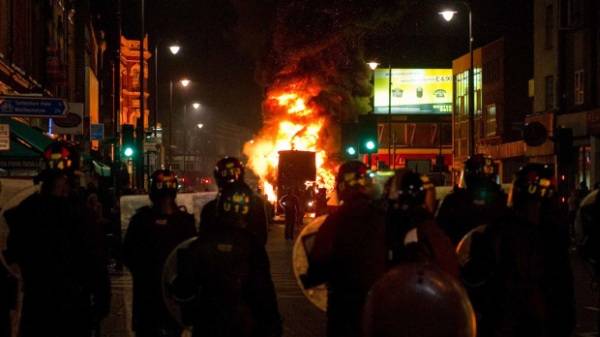 A tűzoltók a zavargások miatt eleinte nehezen tudtak a helyszínre jutni, később azonban sikerült megfékezniük a lángokat.