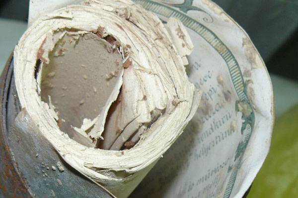 Maga a tartály dupla falú (kívül cink, belül ólom), ám fedele egyrétegű, és meg is sérült, így az alul lévő dokumentumok jobb állapotban vannak, mint a felsők. A helyzetet tovább nehezíti, hogy a szakemberek szerint a korabeli papírnak magas a savtartalma, így ha nem megfelelő körülmények között próbálják szétválasztani a lapokat, azok egyszerűen porrá hullanak.