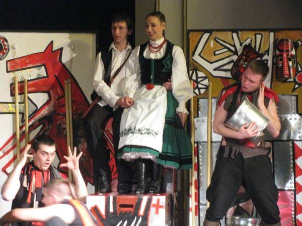A ritmikai játékok pedig hiába emlékeztettek a magyar népzene zsigerileg kódolt ütemeire, egyértelműen egzotikus íze lett a dolognak, ahogy a pokol inkább kópés, mint gonosz ördögfiókái seprűnyelekkel és gumiharangos lefolyópumpákkal jártak táncot és játszottak virtuóz zenét egyszerre. Az előadáshoz készült műsorfüzetből egyébként az is kiderül, hogy a Bambuc ördög a Tamási írói világára rímelő sóvidéki ropogós táncok mellett dél-afrikai táncos és énekes hagyományokból is építkezik. A gumboot elnevezésű „táncot” a Dél-afrikai Köztársaság fekete bányászai járták, akiknek az apartheid rendszer megtiltotta a hagyományos dobolást – így gumicsizmájuk ritmikus dobbantásával üzentek egymásnak.