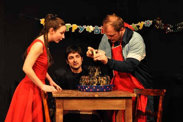 A Születésnap című produkciót Dávid A. Péter írta és rendezte, és vasárnap este mutatták be. Az előadás egy szerelmi háromszög témáját járja körül, a két férfi és egy nő klasszikus konfliktushelyzetéből kiindulva valós élethelyzeteket gondol tovább. A tolókocsiban ülő férfi a harmincadik születésnapját ünnepli barátjával és volt szeretőjével, zárt világukba állandóan betör a külvilág, megszólal egy rádió, témaváltásra kényszerítve a szereplőket.