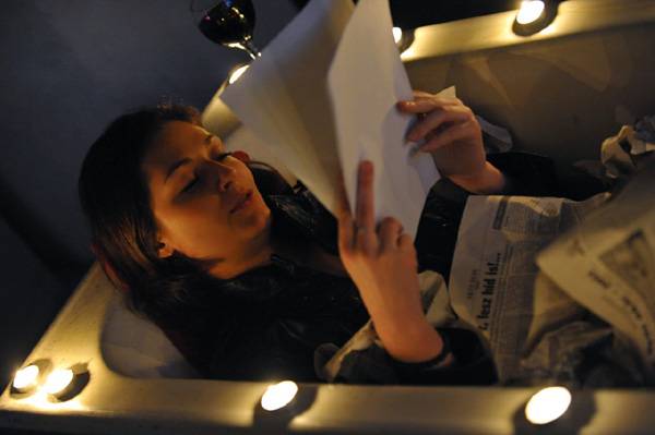 Egy-egy színművész a mellette ülő költő verseit olvasta fel, miközben a kávéház színpadán József Attila szellemét idézte meg Varga Balázs és Szotyori József, akik szintén a Szigligeti Társulat művészei. Mindannyian más-másféle környezetet alakítottak ki maguk körül, így a „tárlat” bebarangolása a versélmények mellett mindig szolgált valamilyen vizuális meglepetéssel is: Ababi Csilla szobabiciklit tekerve szavalta Kinde Annamária verseit, Pitz Melinda egy mécsesekkel körberakott kádban olvasgatta Lipcsei Márta írásait, Kardos M. Róbert pedig lábát egy söröshordón pihentetve ismertette a csocsóasztal másik oldalán sörözgető Zudor János jópofa, játékos rigmusait.