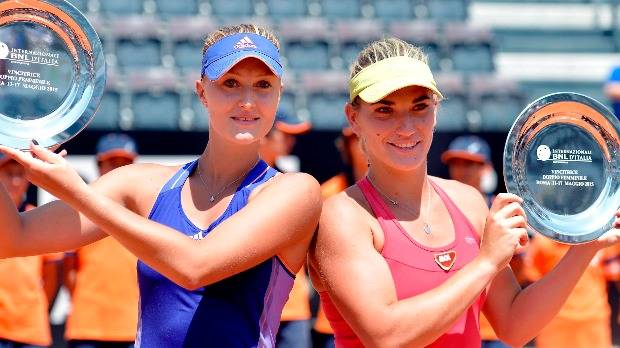A római salakpályás tenisztorna női páros versenyében a francia Mladenovic – aki az ötödik a listán – és Babos harmadik helyen kiemelt duója 6:4, 6:3-ra győzte le a vasárnapi döntőben a Martina Hingis, Sania Mirza svájci, indiai kettőst.