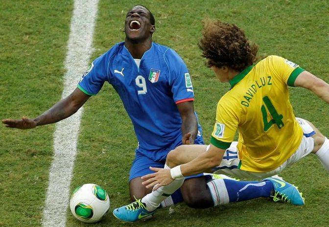 A jövő évi világbajnokságot “beharangozó” futballtorna A csoportjának szombati rangadóján az volt a tét, hogy az addig egyaránt mindkét meccsét megnyerő brazil és olasz válogatott közül melyik kerüli el az elődöntőben a spanyolokat. Az első félidőben hiába játszott fölényben a dél-amerikai együttes Salvadorban, nem tudta feltörni a De Rossit és Pirlót is nélkülöző kékek védelmét. A kemény meccs sorra szedte áldozatait, az olasz Montolivót és Abatét, majd a brazil David Luizt is sérülés miatt kellett lecserélni.