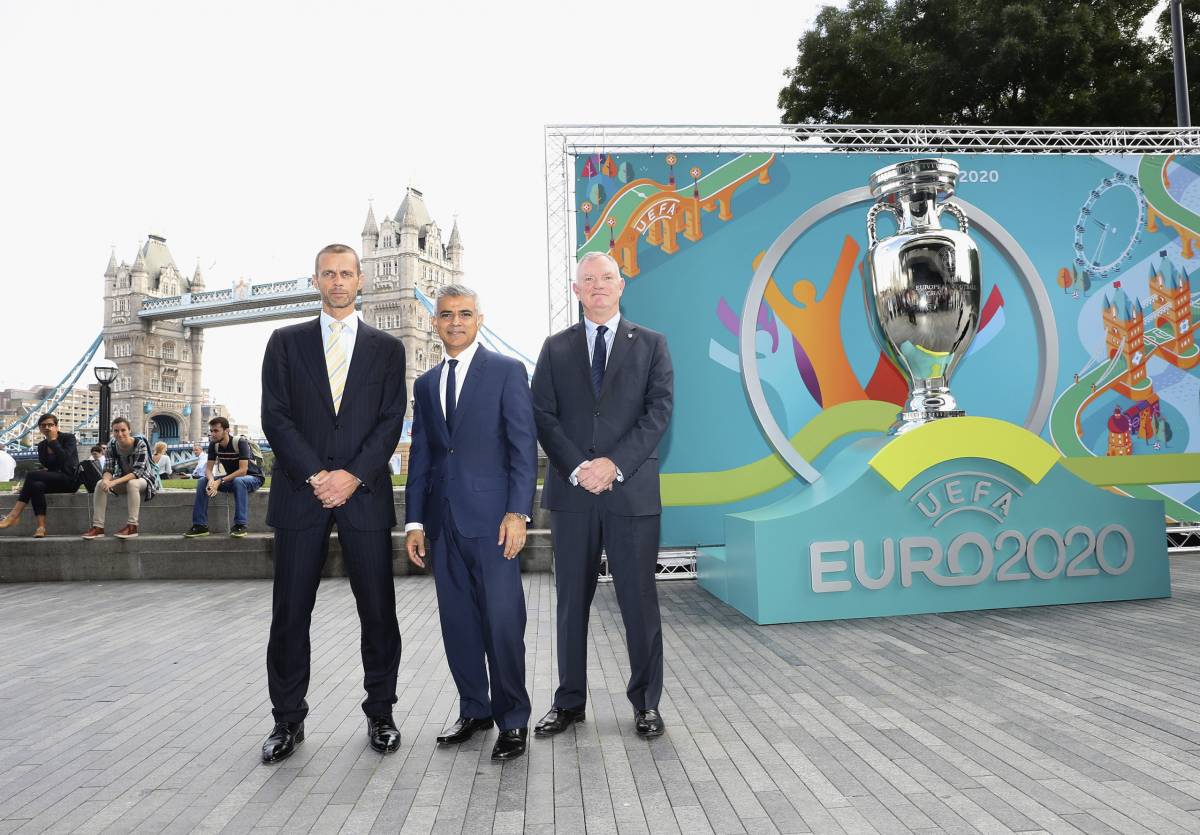 Ceferin szerdán az angol szövetséget (FA) vezető Greg Clarke, valamint az eseménynek otthon adó London főpolgármesterének, Sadiq Khan-nak társaságában mutatta be a négy év múlva esedékes, jubileumi labdarúgó-Európa-bajnokság logóját.