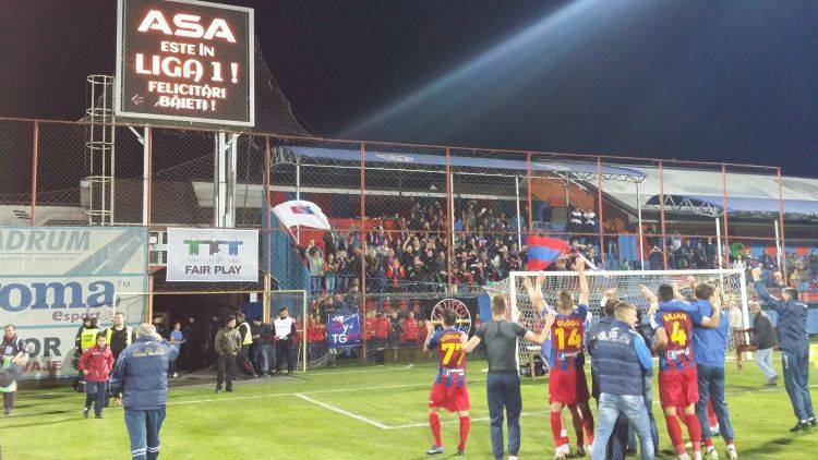 Két év szünet után ismét élvonalbeli futballcsapatnak szurkolhatnak Marosvásárhelyen: az ASA szombat este fantasztikus második félidei teljesítményével 5-0 arányban kiütötte a Besztercei Gloriát a Sziget utcai arénában, így matematikailag is bebiztosította helyét a Liga 1-ben.