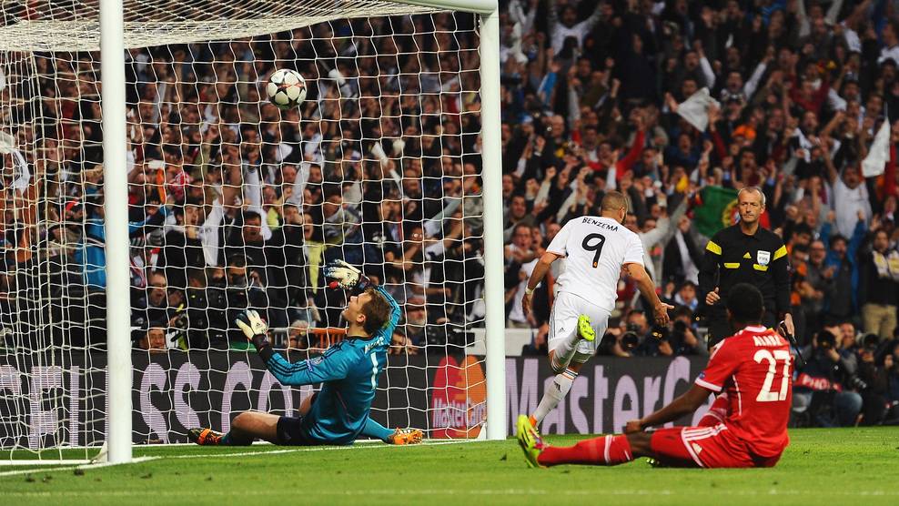 A Real Madrid labdarúgócsapata Karim Benzema egy ellentámadás végén lőtt góljának köszönhetően 1-0-ra verte a címvédő Bayern Münchent a Bajnokok Ligája elődöntőjének első, szerda este a Santiago Bernabeu Stadionban rendezett mérkőzésén.