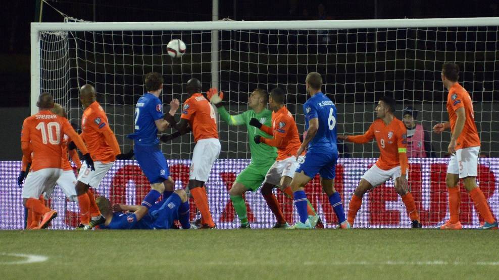 A szigetországiak a 2-0-s sikerrel a hétfői játéknap legnagyobb meglepetését okozták. A legutóbb világbajnoki bronzérmes németalföldi együttes már az első félidőben kétgólos hátrányba került idegenben, miután az angol Premier League-ben, a Swansea-ban futballozó Gylfi Sigurdsson kétszer is betalált, s bár akadtak lehetőségeik a hollandoknak is, a házigazdák voltak azok, akik hatékonyabban játszottak.