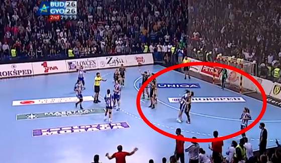 A montenegróiaknak nyerniük kellett volna, hogy élre ugorjanak a csoportban, mikor az utolsó támadásnál, 26-26-nál Knezsevics a győri irányító felé fordult, és belefejelt az arcába. Görbicz egyből elterült a padlón, a montenegrói játékos pedig néhány pillanat múlva dőlt el, ő is az arcát fogta.