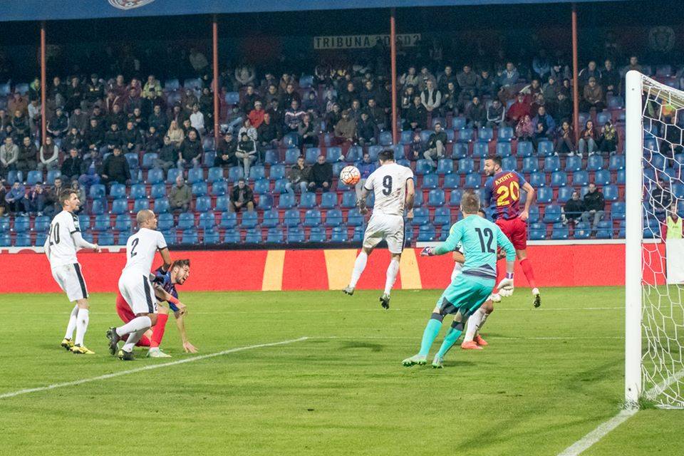 A házigazdák így is kezdeményező szellemben léptek pályára, de erőtlennek bizonyuló támadásaik után hamar feléledt az Astra, amely távoli lövésekkel veszélyeztette Stăncioiu kapuját. A 37. percben aztán az ASA egyik ellentámadásánál Jazvics tizenhatoson belüli beadását a becsúszó Junior Morais kézzel hárította, a megítélt büntetőt pedig Brandan magabiztosan értékesítette. A következő találatra sem kellett sokat várni, hiszen az első félidő egyperces hosszabbításában Mureşan – sorfalon megpattanó szabadrúgásgóljával – kettőre növelte az ASA előnyét.